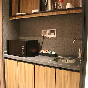 You will find a microwave oven, an electric kettle and refrigerator as well.